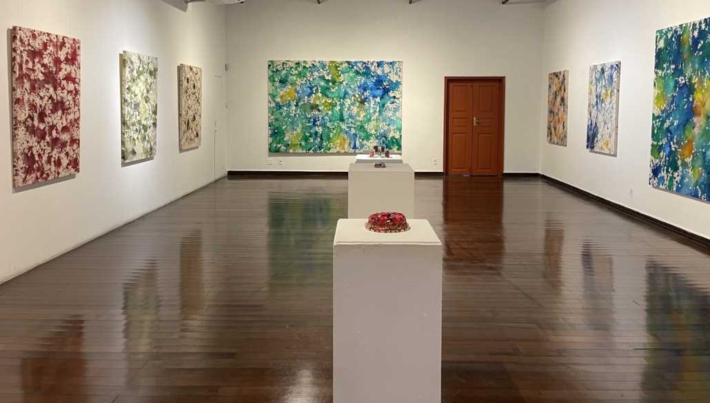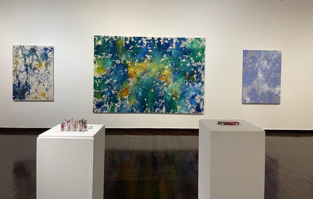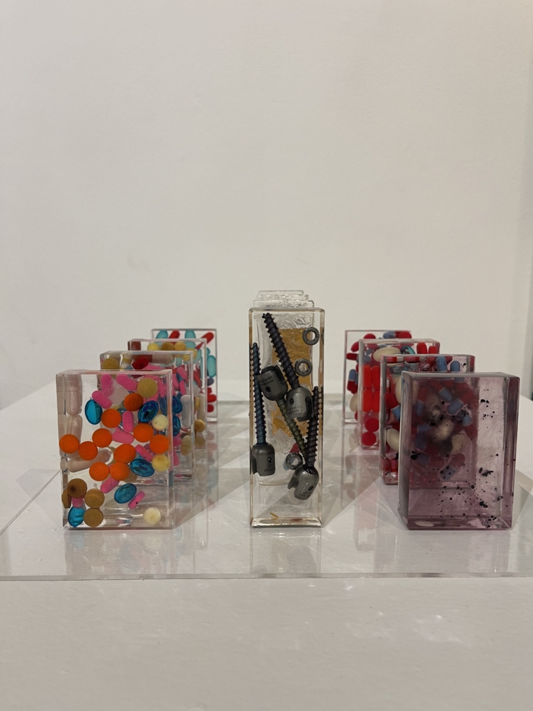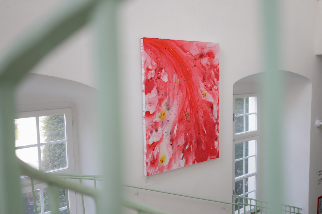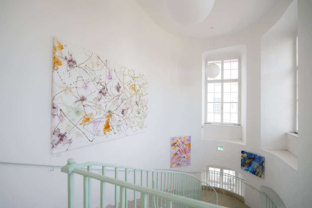 „Monika Kus-Picco (geb. 1973 in Wien, lebt und arbeitet in Wien und Rio de Janeiro). In ihren großformatigen, sogenannten Medizinbildern arbeitet die Künstlerin mit Substanzen der Pharmaindustrie und macht diese erfahrbar. Entscheidend für Kus-Piccos Medizinbilder ist die Wahl der Medikamente. Aus ihnen gewinnt die Künstlerin den Stoff ihrer Farben. Antiseptikum, Neuron, Overdose oder auch Toothache und Familypack lauten Titel aus der Werkreihe. Die Sogwirkung der Malereien auf ihre Betrachter*innen wird unterstützt durch die olfaktorische Wirkung der Farb-Medikament-Gemische. Der Pinselstrich und Farbauftrag auf den Großformaten erinnert an kosmische Prozesse und biochemische Explosionen. Ob ein Malaria-Medikament oder Antidepressiva – Kus-Picco verwendet und recycelt abgelaufene Substanzen in traumhafte Abstraktionen, die einem Humanismus der gegenseitigen Fürsorge huldigen.“ (Distanz Verlag)